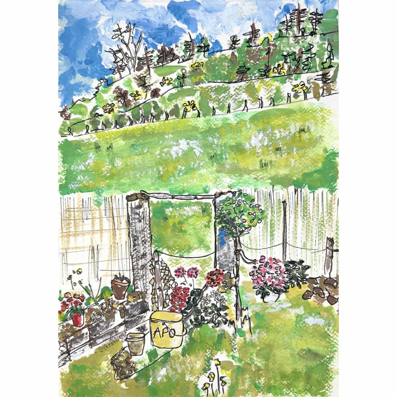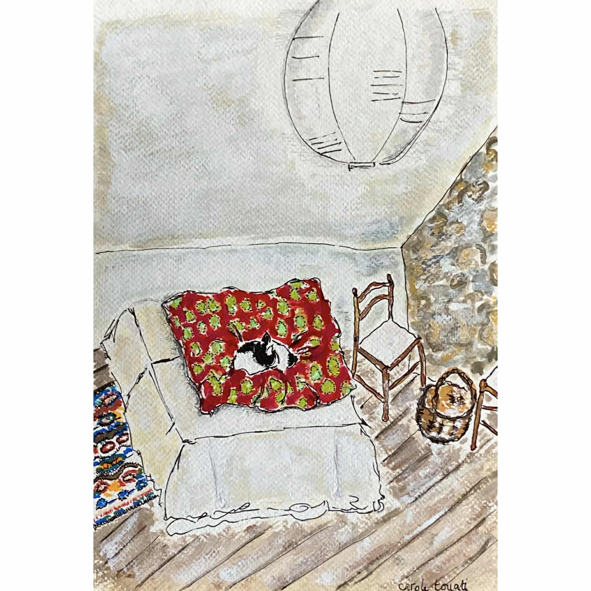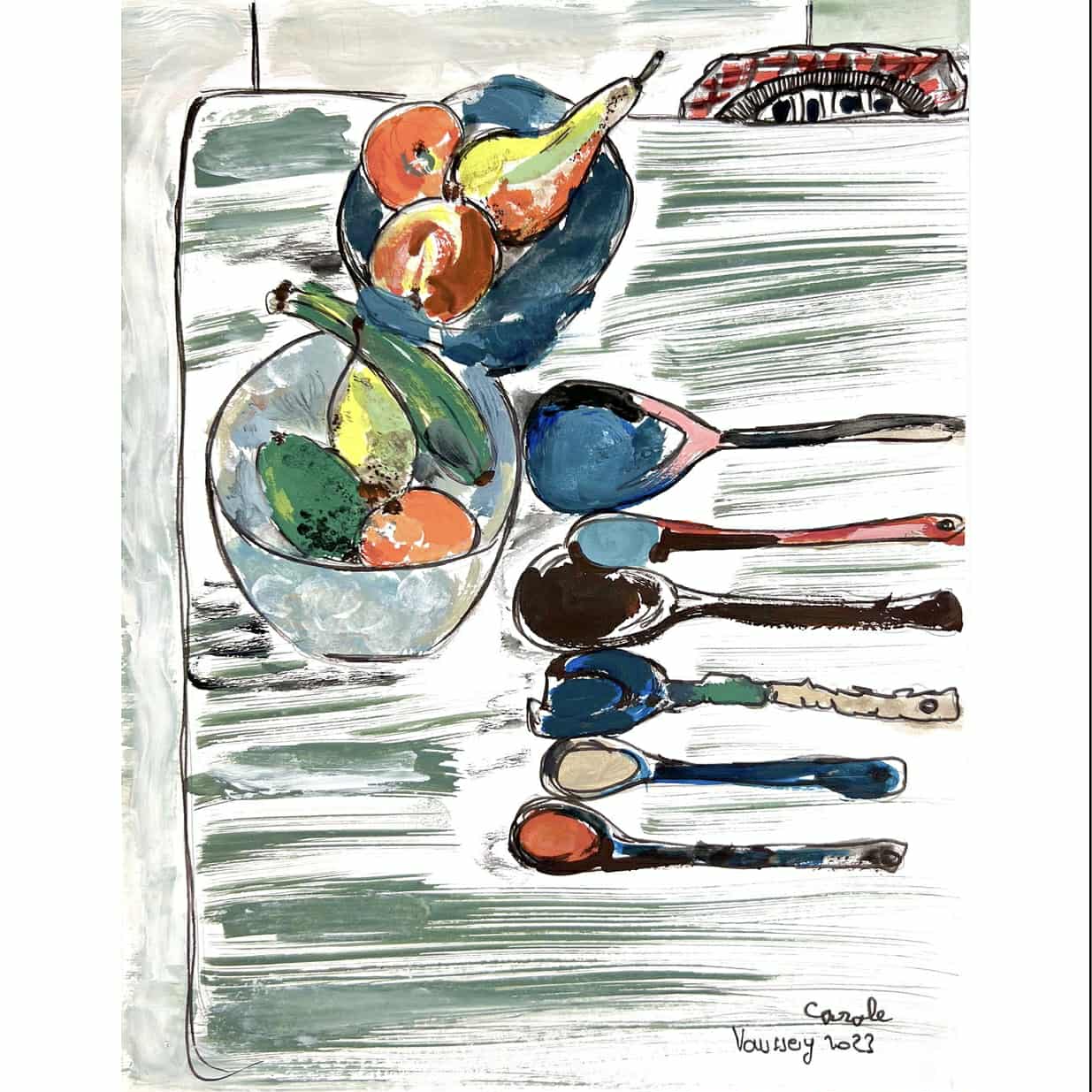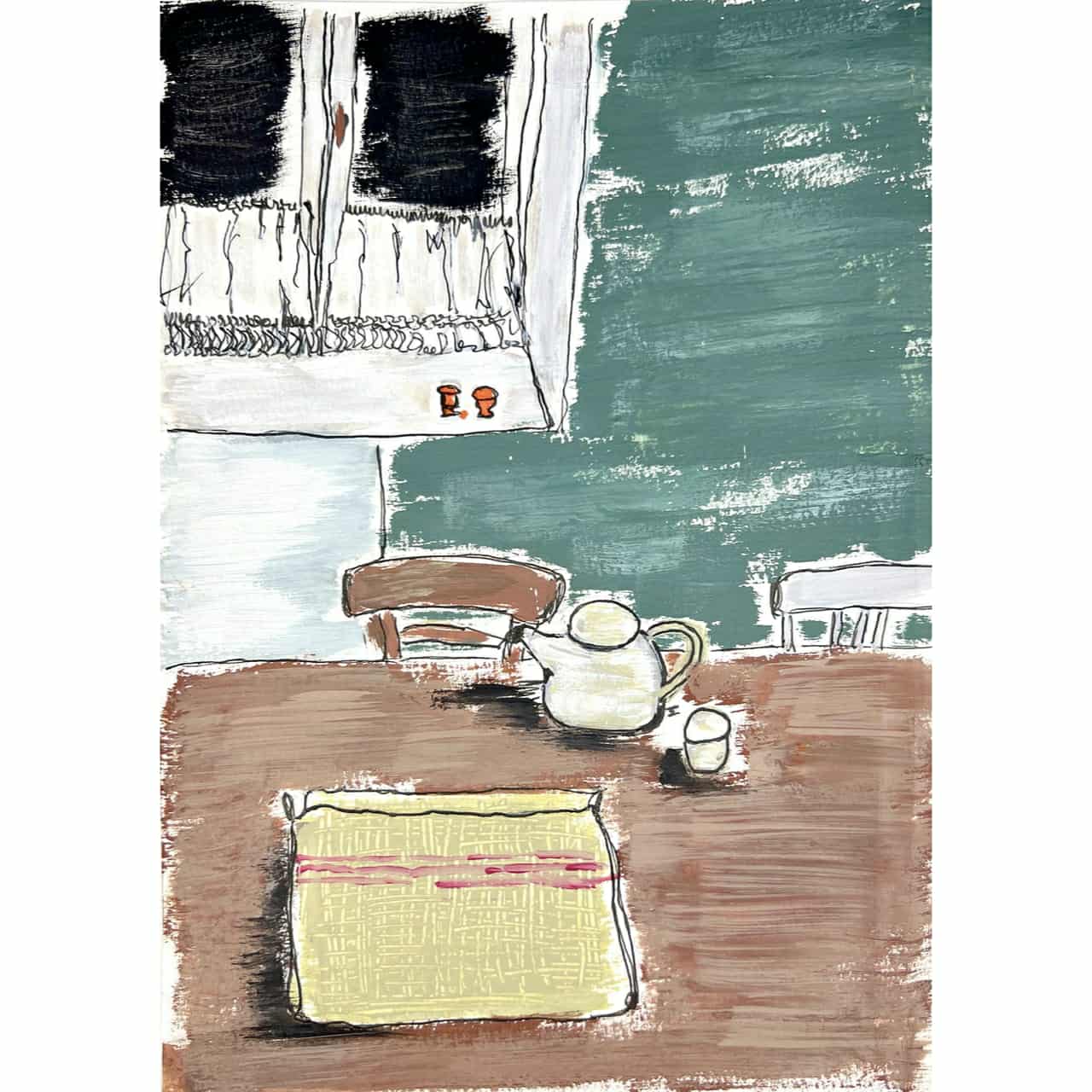 Les illustrations de Carole Touati à la gouache prolongent l’univers artisanal et poétique de sa marque « reconsider the brand ». Elle y explore la couleur dans toute sa densité, en superposant des aplats riches et des textures vibrantes qui rappellent ses recherches en céramique. Ses compositions, à la fois sensibles et expressives, traduisent une approche intuitive où chaque geste devient trace, matière et émotion.